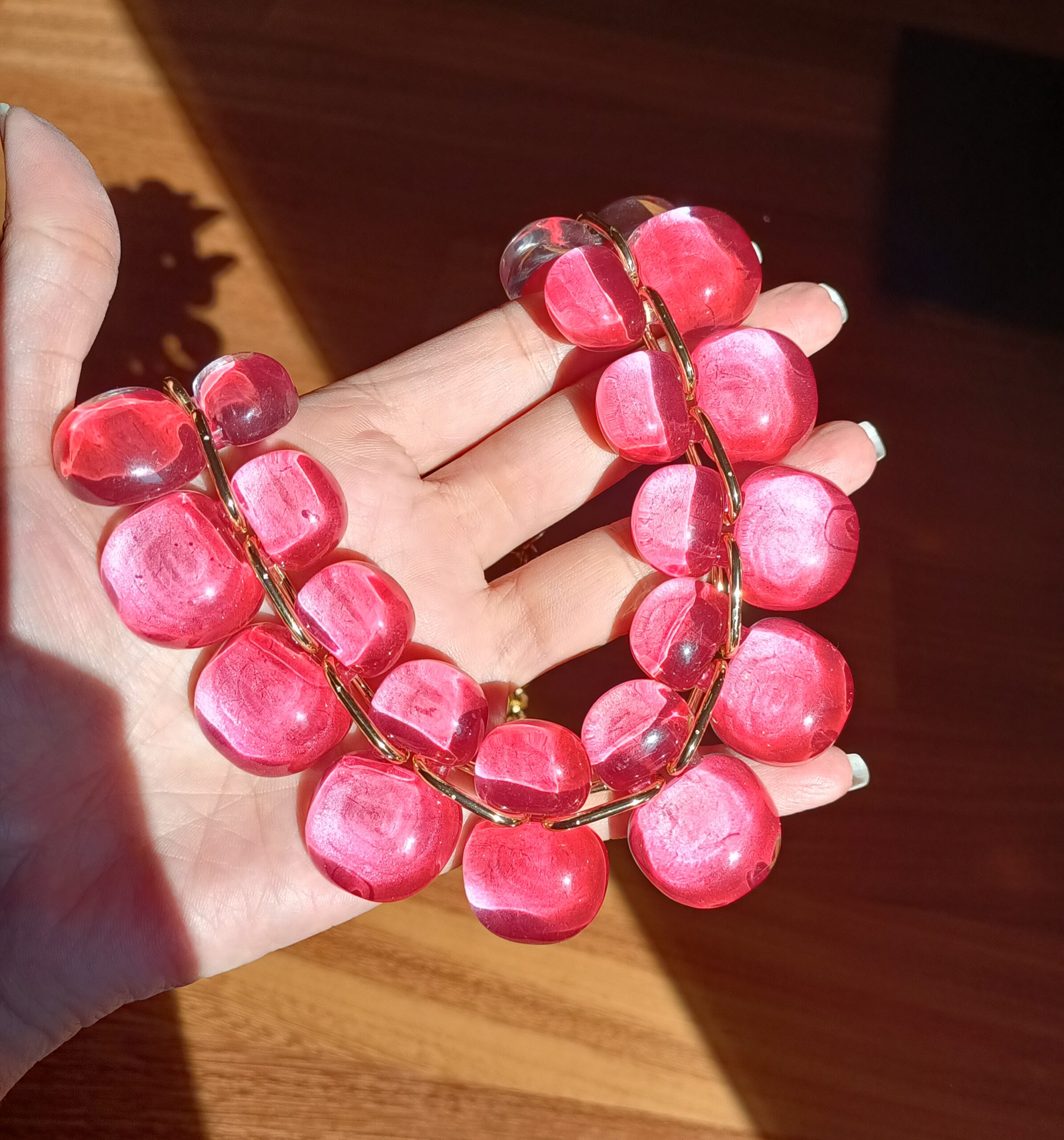 Sono di un piacevole rosa chiaro luminoso con una leggera variazione di tonalità all’interno di ciascun elemento. La luce che le attraversa crea un effetto d profondità e brillantezza. Hanno una finitura traslucida con un effetto “candy” vale a dire che hanno un aspetto estetico gommoso che conferisce loro una morbida lucentezza!